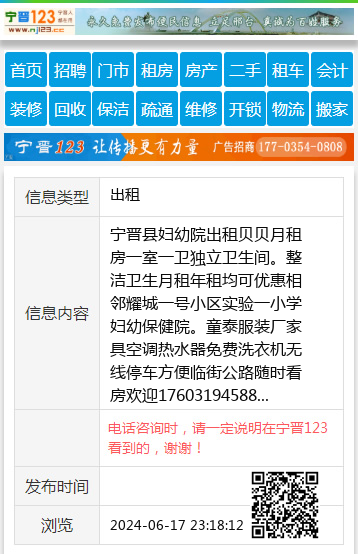 宁晋县妇幼院出租贝贝月租房一室一卫独立卫生间。整洁卫生月租年租均可优惠相邻耀城一号小区实验一小学妇幼保健院。童泰服装厂家具空调热水器免费洗衣机无线停车方便临街公路随时看房欢迎17603194588 【电话咨询时,请一定说明在宁晋123看到的,谢谢!】 |