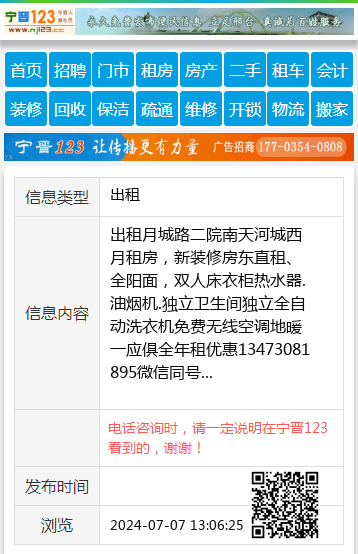 出租月城路二院南天河城西月租房,新装修房东直租、全阳面,双人床衣柜热水器.油烟机.独立卫生间独立全自动洗衣机免费无线空调地暖一应俱全年租优惠13473081895微信同号 【电话咨询时,请一定说明在宁晋123看到的,谢谢!】 |