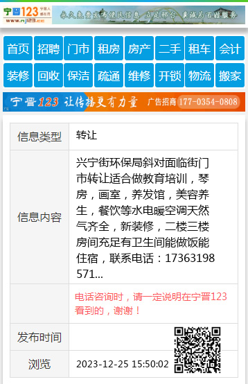 兴宁街环保局斜对面临街门市转让适合做教育培训,琴房,画室,养发馆,美容养生,餐饮等水电暖空调天然气齐全,新装修,二楼三楼房间充足有卫生间能做饭能住宿,联系电话:17363198571 【电话咨询时,请一定说明在宁晋123看到的,谢谢!】 |