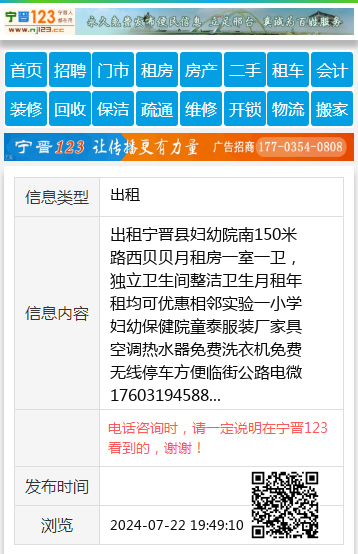 出租宁晋县妇幼院南150米路西贝贝月租房一室一卫,独立卫生间整洁卫生月租年租均可优惠相邻实验一小学妇幼保健院童泰服装厂家具空调热水器免费洗衣机免费无线停车方便临街公路电微17603194588 【电话咨询时,请一定说明在宁晋123看到的,谢谢!】 |