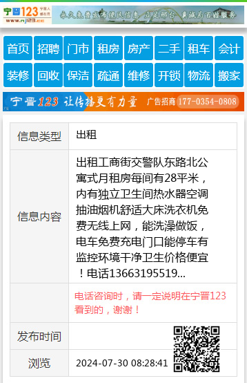 出租工商街交警队东路北公寓式月租房每间有28平米,内有独立卫生间热水器空调抽油烟机舒适大床洗衣机免费无线上网,能洗澡做饭,电车免费充电门口能停车有监控环境干净卫生价格便宜!电话13663195519 【电话咨询时,请一定说明在宁晋123看到的,谢谢!】 |