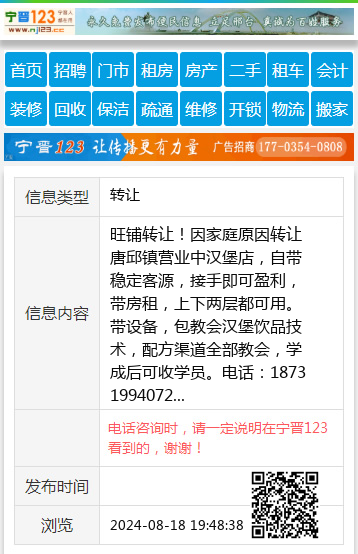 旺铺转让!因家庭原因转让唐邱镇营业中汉堡店,自带稳定客源,接手即可盈利,带房租,上下两层都可用。带设备,包教会汉堡饮品技术,配方渠道全部教会,学成后可收学员。电话:18731994072 【电话咨询时,请一定说明在宁晋123看到的,谢谢!】 |