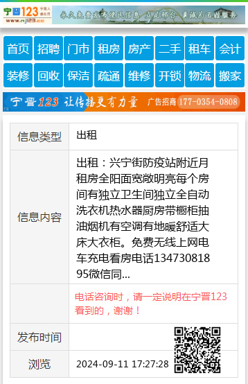 出租:兴宁街防疫站附近月租房全阳面宽敞明亮每个房间有独立卫生间独立全自动洗衣机热水器厨房带橱柜抽油烟机有空调有地暖舒适大床大衣柜。免费无线上网电车充电看房电话13473081895微信同 【电话咨询时,请一定说明在宁晋123看到的,谢谢!】 |