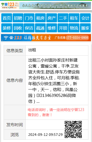 出租三小对面孙家庄村新建公寓,壹暖公寓,干净.卫友谊大街生.舒适.停车方便设施齐全拎包入住,可月租.季租.年租(5分钟生活圈三小,新一中,天一,信和,凤凰公园)☎️13463905286同微信) 【电话咨询时,请一定说明在宁晋123看到的,谢谢!】 |