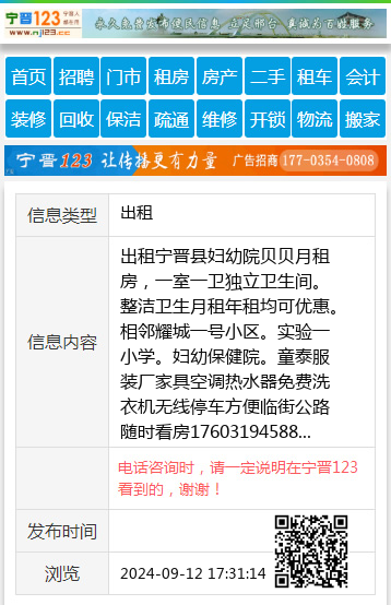 出租宁晋县妇幼院贝贝月租房,一室一卫独立卫生间。整洁卫生月租年租均可优惠。相邻耀城一号小区。实验一小学。妇幼保健院。童泰服装厂家具空调热水器免费洗衣机无线停车方便临街公路随时看房17603194588 【电话咨询时,请一定说明在宁晋123看到的,谢谢!】 |