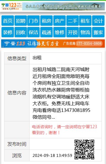 出租月城路二院南天河城附近月租房全阳面宽敞明亮每个房间有独立卫生间全自动洗衣机热水器厨房带橱柜抽油烟机有空调地暖舒适大床大衣柜。免费无线上网电车充电看房电话13473081895微信同号 【电话咨询时,请一定说明在宁晋123看到的,谢谢!】 |