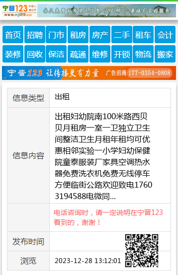 出租妇幼院南100米路西贝贝月租房一室一卫独立卫生间整洁卫生月租年租均可优惠相邻实验一小学妇幼保健院童泰服装厂家具空调热水器免费洗衣机免费无线停车方便临街公路欢迎致电17603194588电微同 【电话咨询时,请一定说明在宁晋123看到的,谢谢!】 |