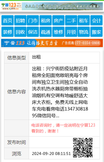出租:兴宁街防疫站附近月租房全阳面宽敞明亮每个房间有独立卫生间独立全自动洗衣机热水器厨房带橱柜抽油烟机有空调有地暖舒适大床大衣柜。免费无线上网电车充电看房电话13473081895微信同号 【电话咨询时,请一定说明在宁晋123看到的,谢谢!】 |