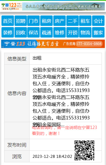 出租金玺国际城三室,新装修,首次出租15933713852。 【电话咨询时,请一定说明在宁晋123看到的,谢谢!】 |