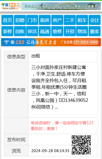 三小对面孙家庄村新建公寓,干净.卫生.舒适.停车方便设施齐全拎包入住,可月租.季租.年租优惠(5分钟生活圈三小,新一中,天一,信和,凤凰公园)☎️13463905286同微信) 【电话咨询时,请一定说明在宁晋123看到的,谢谢!】 |
