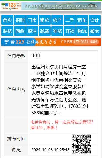 出租妇幼院贝贝月租房一室一卫独立卫生间整洁卫生月租年租均可优惠相邻实验一小学妇幼保健院童泰服装厂家具空调热水器免费洗衣机无线停车方便临街公路。随时看房欢迎致电,17603194588微信同号 【电话咨询时,请一定说明在宁晋123看到的,谢谢!】 |