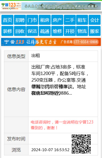出租厂房:占地3亩多,标准车间1200平,配备5吨行车,250变压器,办公室等.交通便利,门前可停车。