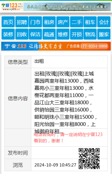 出租[玫瑰][玫瑰][玫瑰]上城嘉园两室年租13000,西城嘉苑小三室年租13000,水榭花都两室年租11000,一品江山大三室年租18000,供销怡园三室年租16000,颐和明珠小三室年租15000,阳光怡园一室年租8000,上城御府年租17000.有钥匙随时看房!!!13483972651 【电话咨询时,请一定说明在宁晋123看到的,谢谢!】 |