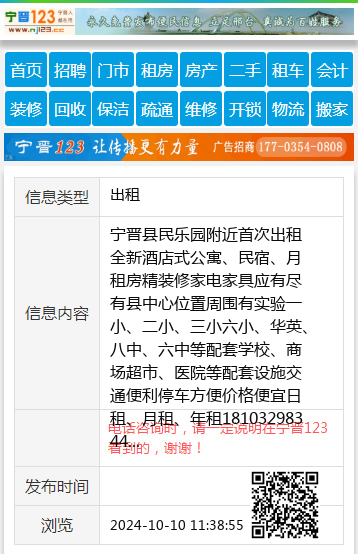宁晋县民乐园附近首次出租全新酒店式公寓、民宿、月租房精装修家电家具应有尽有县中心位置周围有实验一小、二小、三小六小、华英、八中、六中等配套学校、商场超市、医院等配套设施交通便利停车方便价格便宜日租、月租、年租18103298344 【电话咨询时,请一定说明在宁晋123看到的,谢谢!】 |