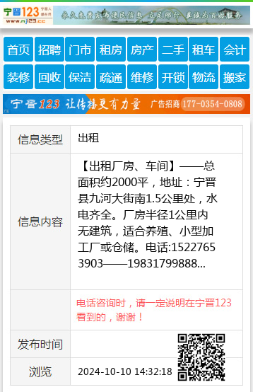 【出租厂房、车间】——总面积约2000平,地址:宁晋县九河大街南1.5公里处,水电齐全。厂房半径1公里内无建筑,适合养殖、小型加工厂或仓储。电话:15227653903——19831799888 【电话咨询时,请一定说明在宁晋123看到的,谢谢!】 |