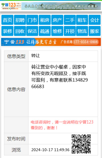 转让营业中小餐桌,因家中有所变故无暇顾及,接手既可盈利,有意者联系13482966683