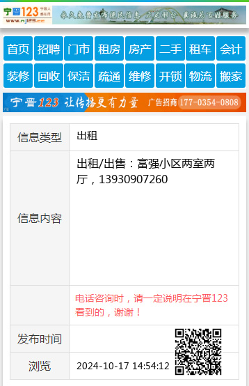 出租/出售:富强小区两室两厅,13930907260