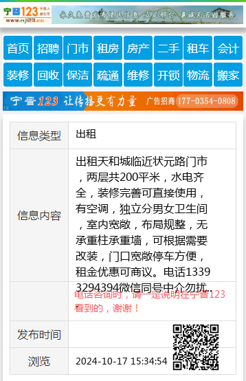 出租天和城临近状元路门市,两层共200平米,水电齐全,装修完善可直接使用,有空调,独立分男女卫生间,室内宽敞,布局规整,无承重柱承重墙,可根据需要改装,门口宽敞停车方便,租金优惠可商议。电话13393294394微信同号中介勿扰 【电话咨询时,请一定说明在宁晋123看到的,谢谢!】 |