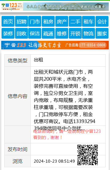 出租天和城状元路门市,两层共200平米,水电齐全,装修完善可直接使用,有空调,独立分男女卫生间,室内宽敞,布局规整,无承重柱承重墙,可根据需要改装,门口宽敞停车方便,租金优惠可商议。电话13393294394微信同号中介勿扰 【电话咨询时,请一定说明在宁晋123看到的,谢谢!】 |