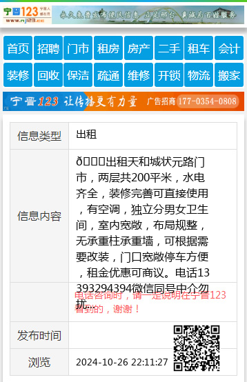 🍎出租天和城状元路门市,两层共200平米,水电齐全,装修完善可直接使用,有空调,独立分男女卫生间,室内宽敞,布局规整,无承重柱承重墙,可根据需要改装,门口宽敞停车方便,租金优惠可商议。电话13393294394微信同号中介勿扰 【电话咨询时,请一定说明在宁晋123看到的,谢谢!】 |