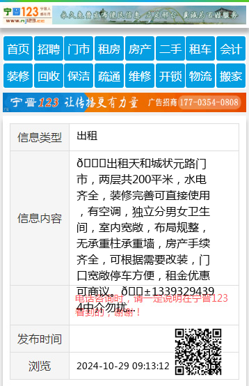 🍎出租天和城状元路门市,两层共200平米,水电齐全,装修完善可直接使用,有空调,独立分男女卫生间,室内宽敞,布局规整,无承重柱承重墙,房产手续齐全,可根据需要改装,门口宽敞停车方便,租金优惠可商议。📱13393294394中介勿扰 【电话咨询时,请一定说明在宁晋123看到的,谢谢!】 |