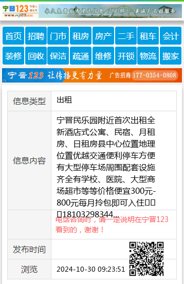 宁晋民乐园附近首次出租全新酒店式公寓、民宿、月租房、日租房县中心位置地理位置优越交通便利停车方便有大型停车场周围配套设施齐全有学校、医院、大型商场超市等等价格便宜300元-800元每月拎包即可入住☎️18103298344 【电话咨询时,请一定说明在宁晋123看到的,谢谢!】 |