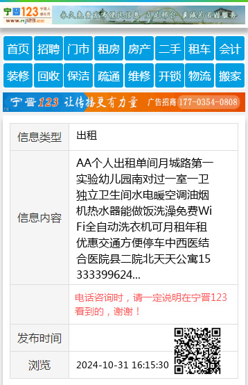 AA个人出租单间月城路第一实验幼儿园南对过一室一卫独立卫生间水电暖空调油烟机热水器能做饭洗澡免费WiFi全自动洗衣机可月租年租优惠交通方便停车中西医结合医院县二院北天天公寓15333399624 【电话咨询时,请一定说明在宁晋123看到的,谢谢!】 |