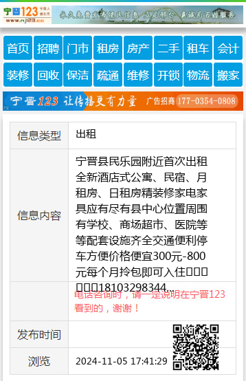 宁晋县民乐园附近首次出租全新酒店式公寓、民宿、月租房、日租房精装修家电家具应有尽有县中心位置周围有学校、商场超市、医院等等配套设施齐全交通便利停车方便价格便宜300元-800元每个月拎包即可入住☎️18103298344 【电话咨询时,请一定说明在宁晋123看到的,谢谢!】 |