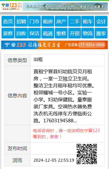 直租宁晋县妇幼院贝贝月租房,一室一卫独立卫生间。整洁卫生月租年租均可优惠。相邻耀城一号小区。实验一小学。妇幼保健院。童泰服装厂家具。空调热水器免费洗衣机无线停车方便临街公路。17603194588 【电话咨询时,请一定说明在宁晋123看到的,谢谢!】 |