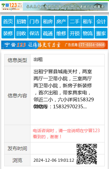 出租宁晋县城南关村,两室两厅一卫带小院,三室两厅两卫带小院,新房子新装修,首次出租,带家具家电,邻近二小,六小详询15832903015