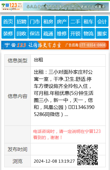出租:三小对面孙家庄村公寓一室,干净.卫生.舒适.停车方便设施齐全拎包入住,可月租.年租优惠(5分钟生活圈三小,新一中,天一,信和,凤凰公园)☎️13463905286同微信) 【电话咨询时,请一定说明在宁晋123看到的,谢谢!】 |
