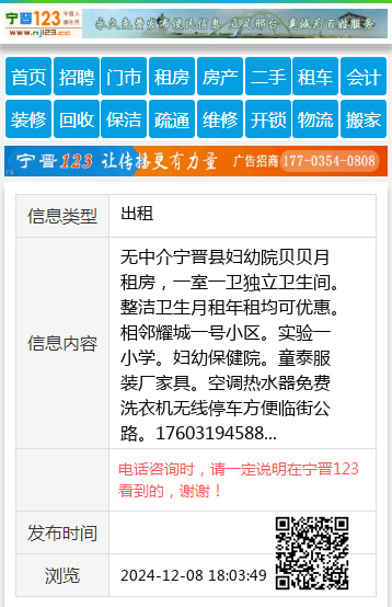 无中介宁晋县妇幼院贝贝月租房,一室一卫独立卫生间。整洁卫生月租年租均可优惠。相邻耀城一号小区。实验一小学。妇幼保健院。童泰服装厂家具。空调热水器免费洗衣机无线停车方便临街公路。17603194588 【电话咨询时,请一定说明在宁晋123看到的,谢谢!】 |