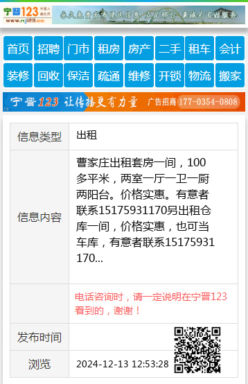 曹家庄出租套房一间,100多平米,两室一厅一卫一厨两阳台。价格实惠。有意者联系15175931170另出租仓库一间,价格实惠,也可当车库,有意者联系15175931170 【电话咨询时,请一定说明在宁晋123看到的,谢谢!】 |