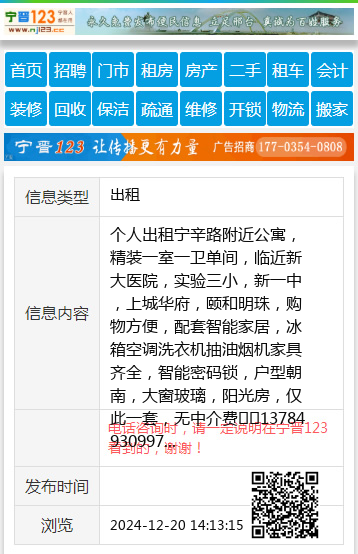 个人出租宁辛路附近公寓,精装一室一卫单间,临近新大医院,实验三小,新一中,上城华府,颐和明珠,购物方便,配套智能家居,冰箱空调洗衣机抽油烟机家具齐全,智能密码锁,户型朝南,大窗玻璃,阳光房,仅此一套,无中介费☎️13784930997 【电话咨询时,请一定说明在宁晋123看到的,谢谢!】 |