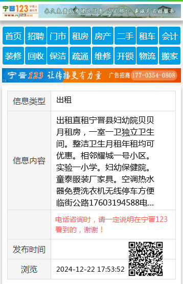出租直租宁晋县妇幼院贝贝月租房,一室一卫独立卫生间。整洁卫生月租年租均可优惠。相邻耀城一号小区。实验一小学。妇幼保健院。童泰服装厂家具。空调热水器免费洗衣机无线停车方便临街公路17603194588电 【电话咨询时,请一定说明在宁晋123看到的,谢谢!】 |