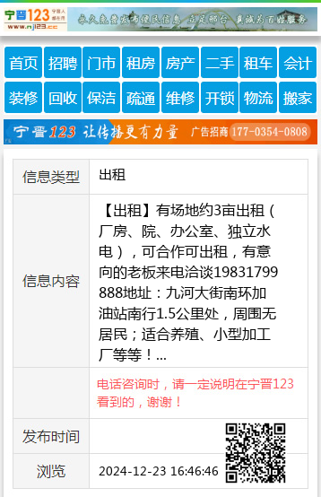 【出租】有场地约3亩出租(厂房、院、办公室、独立水电),可合作可出租,有意向的老板来电洽谈19831799888