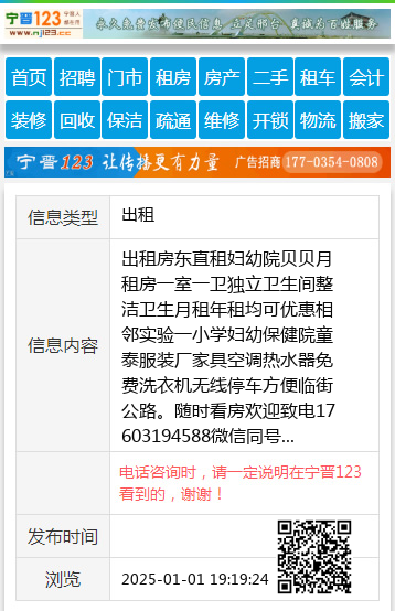 出租房东直租妇幼院贝贝月租房一室一卫独立卫生间整洁卫生月租年租均可优惠相邻实验一小学妇幼保健院童泰服装厂家具空调热水器免费洗衣机无线停车方便临街公路。随时看房欢迎致电17603194588微信同号 【电话咨询时,请一定说明在宁晋123看到的,谢谢!】 |
