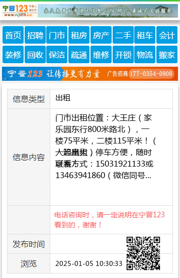 门市出租位置:大王庄(家乐园东行800米路北),一楼75平米,二楼115平米!(一起出租)
