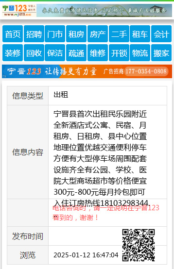 宁晋县首次出租民乐园附近全新酒店式公寓、民宿、月租房、日租房、县中心位置地理位置优越交通便利停车方便有大型停车场周围配套设施齐全有公园、学校、医院大型商场超市等价格便宜300元-800元每月拎包即可入住订房热线18103298344 【电话咨询时,请一定说明在宁晋123看到的,谢谢!】 |