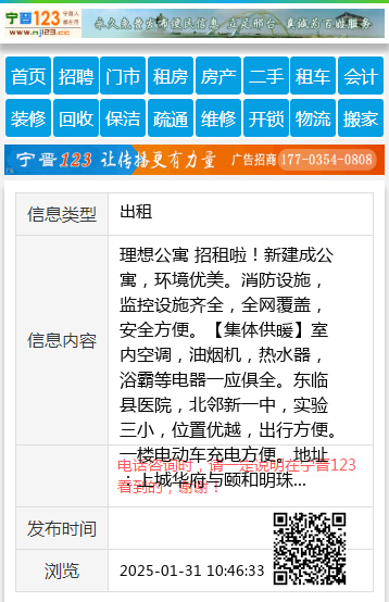理想公寓 招租啦!新建成公寓,环境优美。消防设施,监控设施齐全,全网覆盖,安全方便。【集体供暖】室内空调,油烟机,热水器,浴霸等电器一应俱全。东临县医院,北邻新一中,实验三小,位置优越,出行方便。一楼电动车充电方便。地址:上城华府与颐和明珠交叉口东行180米路北。联系电话:13603193858;15832941567。 【电话咨询时,请一定说明在宁晋123看到的,谢谢!】 |