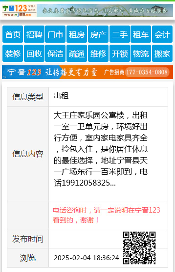 大王庄家乐园公寓楼,出租一室一卫单元房,环境好出行方便,室内家电家具齐全,拎包入住,是你居住休息的最佳选择,地址宁晋县天一广场东行一百米即到,电话19912058325 【电话咨询时,请一定说明在宁晋123看到的,谢谢!】 |
