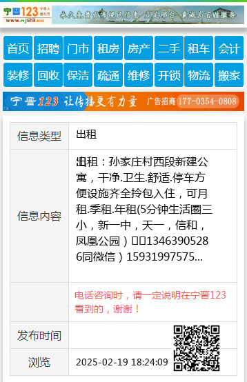 出租:孙家庄村西段新建公寓,干净.卫生.舒适.停车方便设施齐全拎包入住,可月租.季租.年租(5分钟生活圈三小,新一中,天一,信和,凤凰公园)☎️13463905286同微信)15931997575 【电话咨询时,请一定说明在宁晋123看到的,谢谢!】 |