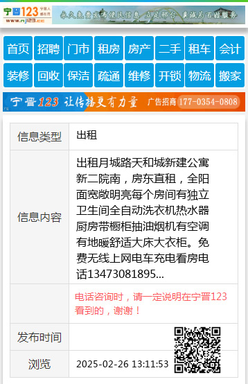 出租月城路天和城新建公寓新二院南,房东直租,全阳面宽敞明亮每个房间有独立卫生间全自动洗衣机热水器厨房带橱柜抽油烟机有空调有地暖舒适大床大衣柜。免费无线上网电车充电看房电话13473081895 【电话咨询时,请一定说明在宁晋123看到的,谢谢!】 |