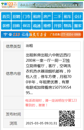 出租新房出租六中附近西行200米一室一厅一厨一卫独立厨房餐厅,客厅,空调洗衣机热水器油烟机都有,拎包入住,停车方便,月租700半年,年租更优惠,有意电联或加微看房15075955495 【电话咨询时,请一定说明在宁晋123看到的,谢谢!】 |