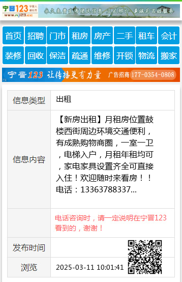 【新房出租】月租房位置鼓楼西街周边环境交通便利,有成熟购物商圈,一室一卫,电梯入户,月租年租均可,家电家具设置齐全可直接入住!欢迎随时来看房!!电话:13363788337 【电话咨询时,请一定说明在宁晋123看到的,谢谢!】 |