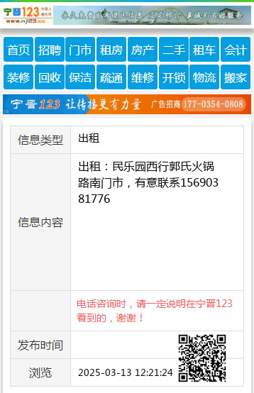 出租:民乐园西行郭氏火锅路南门市,有意联系15690381776