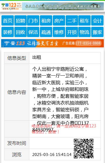 个人出租宁辛路附近公寓,精装一室一厅一卫和单间,临近新大医院,实验三小,新一中,上城华府颐和明珠,购物方便,配套智能家居,冰箱空调洗衣机抽油烟机家具齐全,智能密码锁,户型朝南,大窗玻璃,阳光房,仅此一套无中介费☎️13784930997 【电话咨询时,请一定说明在宁晋123看到的,谢谢!】 |