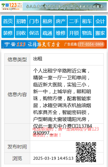 个人出租宁辛路附近公寓,精装一室一厅一卫和单间,临近新大医院,实验三小,新一中,上城华府,颐和明珠,购物方便,配套智能家居,冰箱空调洗衣机抽油烟机家具齐全,智能密码锁,户型朝南大窗玻璃阳光房,仅此一套无中介费☎️13784930997 【电话咨询时,请一定说明在宁晋123看到的,谢谢!】 |