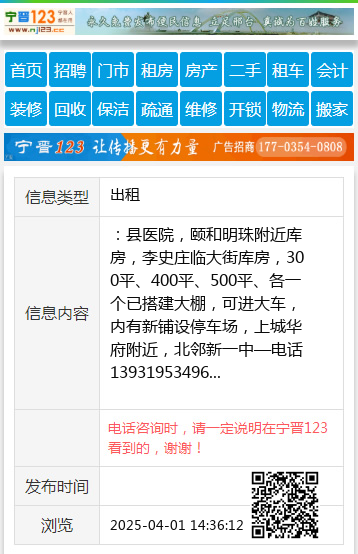 :县医院,颐和明珠附近库房,李史庄临大街库房,300平、400平、500平、各一个已搭建大棚,可进大车,内有新铺设停车场,上城华府附近,北邻新一中—电话13931953496 【电话咨询时,请一定说明在宁晋123看到的,谢谢!】 |