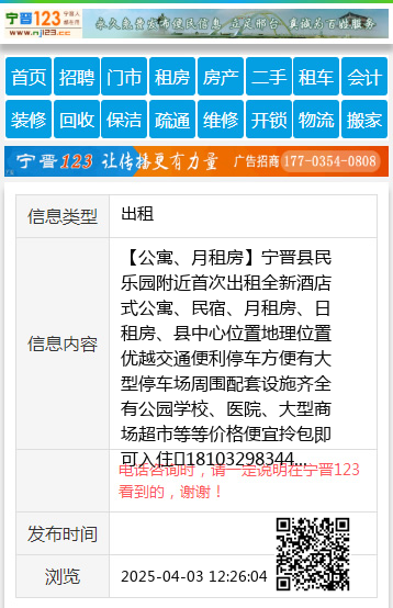 【公寓、月租房】宁晋县民乐园附近首次出租全新酒店式公寓、民宿、月租房、日租房、县中心位置地理位置优越交通便利停车方便有大型停车场周围配套设施齐全有公园学校、医院、大型商场超市等等价格便宜拎包即可入住18103298344 【电话咨询时,请一定说明在宁晋123看到的,谢谢!】 |